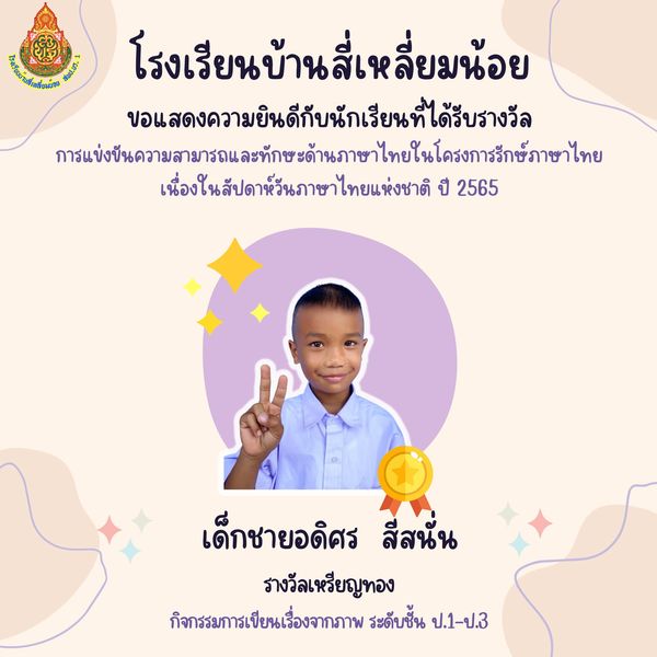 ที่ได้รับรางวัลการแข่งขันความสามารถและทักษะภาษาไทยในโครงการรักษ์ภาษาไทย เนื่องในสัปดาห์วันภาษาไทยแห่งชาติ ปี 2565